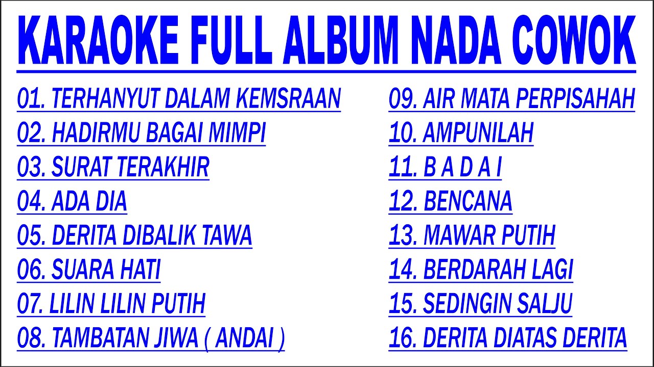 Karaoke Full Album 16 Lagu Nada Cowok Youtube